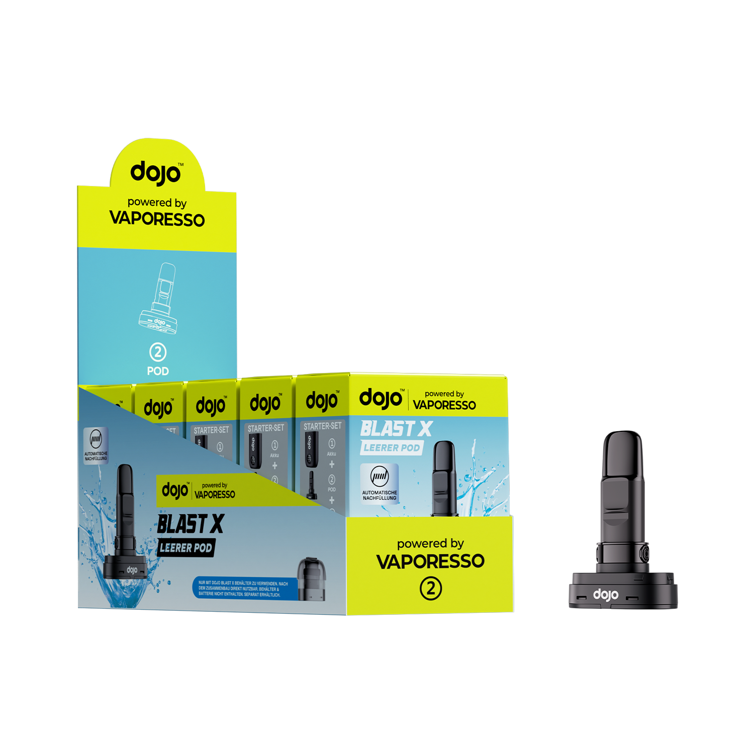 Mit dem dojo™ BLAST X Leeren Pod erhältst du maximale Flexibilität und Komfort für dein Dampferlebnis. Entwickelt in Zusammenarbeit mit Vaporesso, bieten die Pods modernste Technologie, auslaufsichere Konstruktion und einfache Handhabung – ideal für den täglichen Gebrauch.
